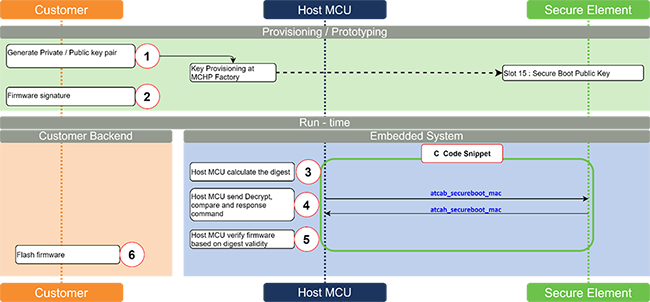- Host MCU sends the digest and signature to secure element