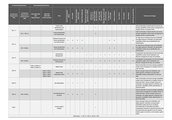 Selection Matrix from AN3983 for Secure Element Feature vs. IEC62443 Specifications