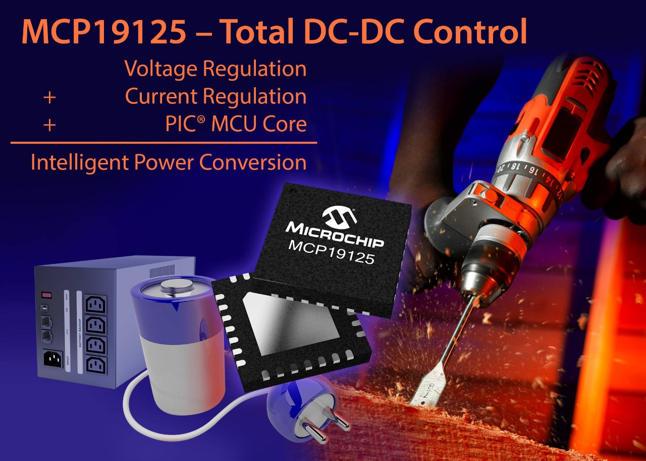 - Integrated linear regulator, MOSFET drivers, 8-bit PIC® microcontroller core, analog-to-digital converter, precision oscillator and analog control loops for a compact solution.