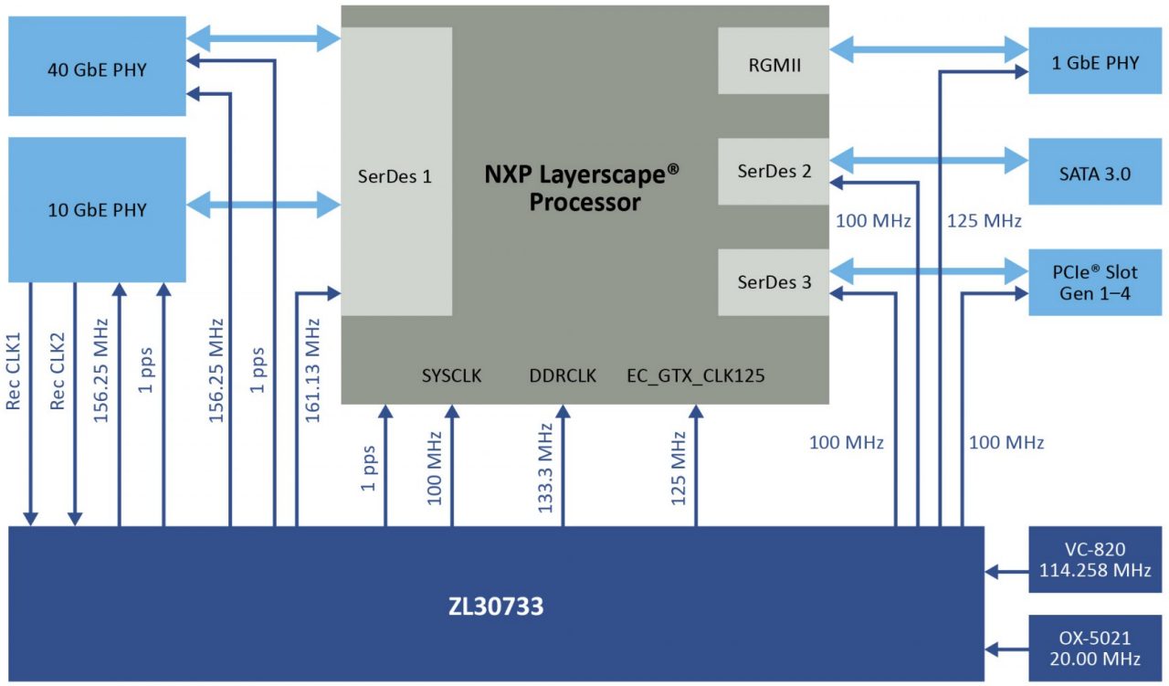 The ZL30733 is a feature-rich network synchronization solution with up to six independent DPLLs and five extremely low output jitter synthesizers . The ZL30733 supports IEEE 1588-2008 Precision Time Protocol (PTP) stack and synchronization algorithm software modules, making the device well suited for applications such as 5G Distributed Units (DUs), Centralized Units (CUs) and Radio Units (RUs).