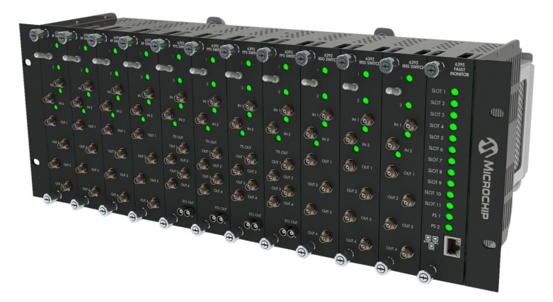 Our intelligent 6300 series modular signal switching and distribution system provides ultra-low phase noise performance for demanding ground station, metrology and national time scale applications. The 6300 series’ modular and flexible distribution architecture enables a wide range of signal formats, including low-noise sine waves, Inter-Range Instrumentation Group (IRIG) timecodes and pulse formats. The 6300 series has a variety of plug-in cards that are hot swappable and customizable.