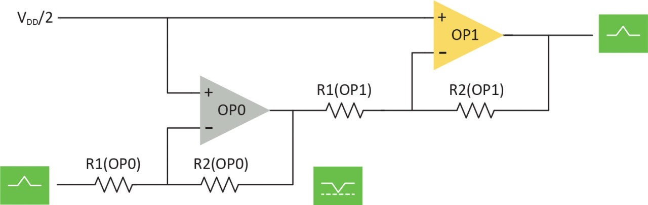 Embedded operational amplifiers are designed to be used as general-purpose operational amplifiers. A few of the common use cases that benefit from the peripheral are listed below: