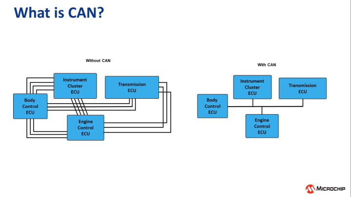 An MCU with a CAN peripheral only needs a CAN transceiver to interface with the bus. If the MCU does not have a CAN peripheral, you can connect a discrete controller and a transceiver to the MCU.