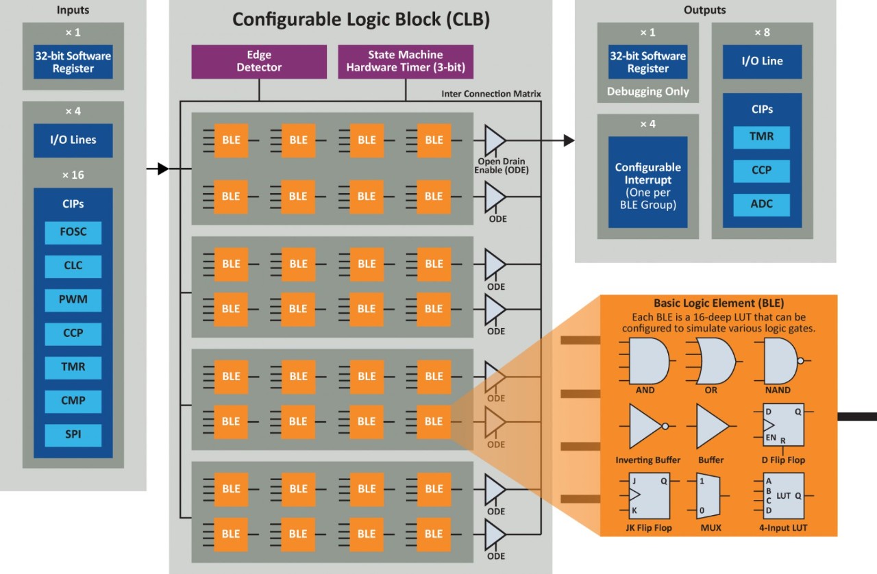 Capable of operating while the MCU is in sleep mode, the CLB peripheral provides parallel complex processing with very low power consumption and a wide voltage range, making it suitable for battery-powered applications. When paired with the MCU’s robust 8-bit core and integrated analog and digital peripherals, the CLB seamlessly connects with other sensors and easily integrates into larger systems. Its small package size is great for space-constrained applications that require cost-effective, low-power and efficient programmable logic or applications that require a companion MCU. Explore the CLB with the easy-to-use CLB synthesizer, a user-friendly tool that can sketch, optimize, synthesize and output your logic design for experienced and beginner designers alike.