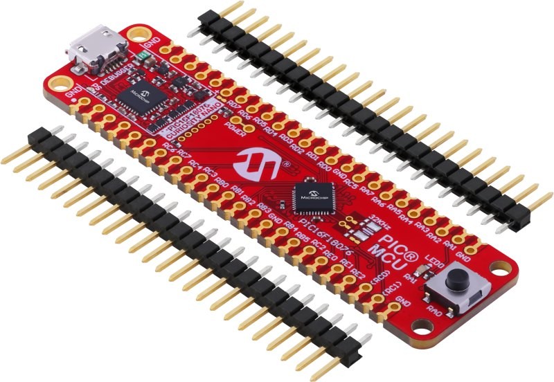 The PIC18F18076 Curiosity Nano Evaluation Kit is the ideal platform for rapid prototyping with the PIC16F18076 family of MCUs. This USB-powered kit features an on-board programmer/debugger that seamlessly integrates with MPLAB® X Integrated Development Environment (IDE). Its small form factor makes the board excellent for breadboard soldering, or you can combine it with the Curiosity Nano Base for Click boards™, which features multiple mikroBUS™ sockets so you can easily add sensors, actuators or communications interfaces from Mikroelektronika’s extensive selection of Click boards.
