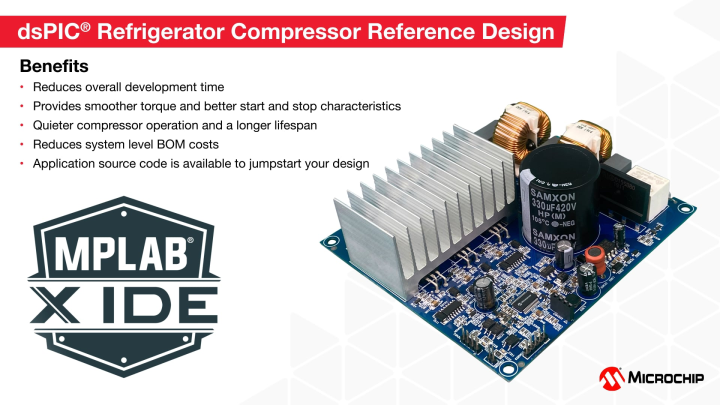 This video will introduce you to Microchip’s refrigerator compressor reference design that will help you to rapidly prototype and develop a cost-effective and innovative design using a dsPIC33 Digital Signal Controller.