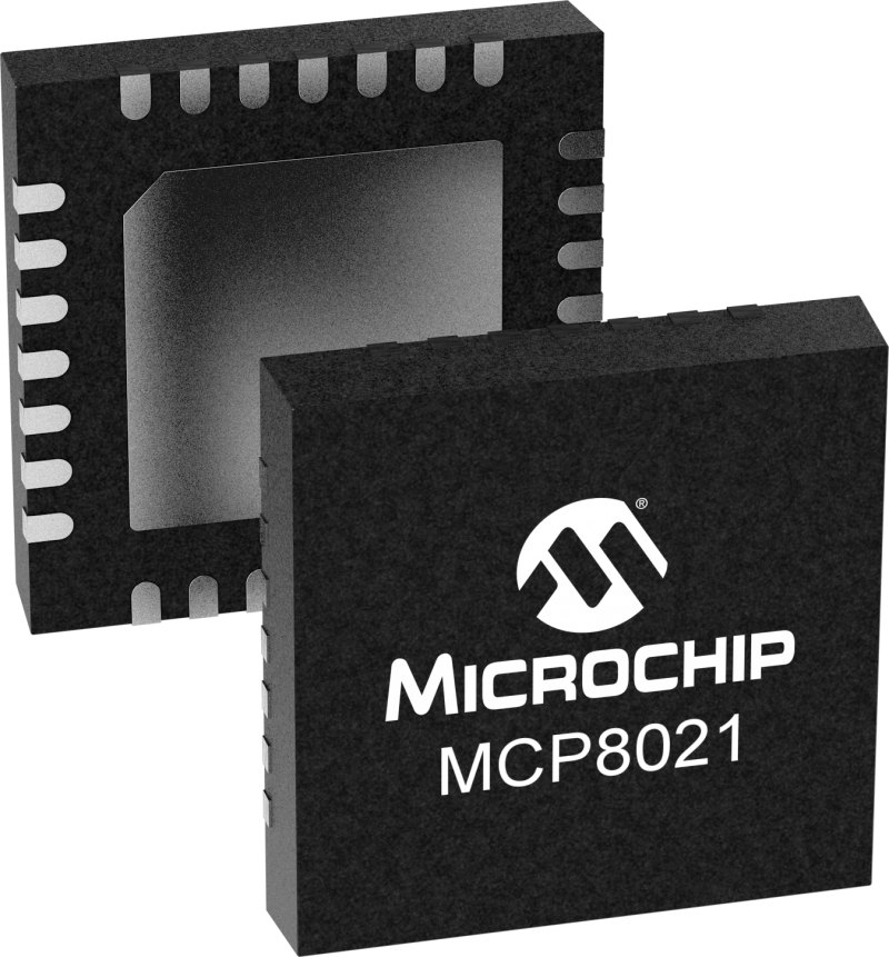 Our MCP802x family of 3-phase Brushless DC (BLDC) motor gate drivers with a power module contains three integrated half-bridge drivers and is capable of driving three external N-type Metal-Oxide-Semiconductor (NMOS)/NMOS transistor pairs. The three half-bridge drivers can deliver a peak output current of 0.5A at 12V for driving high-side and low-side NMOS MOSFET transistors. The MCP802x motor driver family of products features many built-in safety features and functional safety support.