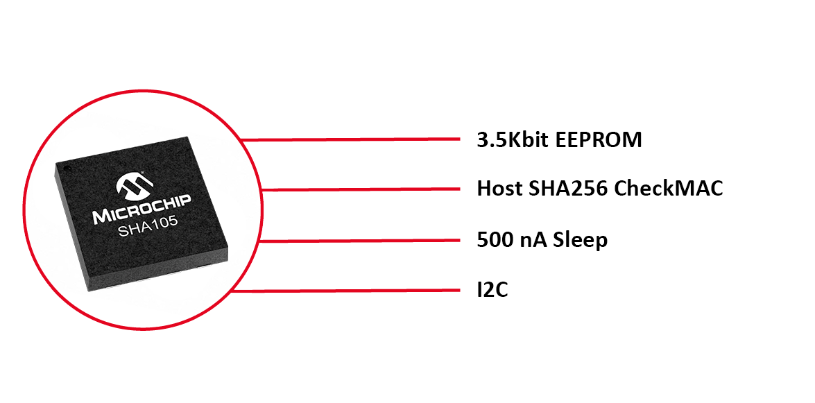 Our cost-effective ECC204 or more-advanced ATECC608 devices enable you to implement Public Key Infrastructure (PKI) for asymmetric authentication with private/public key pairs and certificates. If you would like to eliminate the PCB in your disposable, consider using our three-pin and two-pin (ECC206) authentication ICs for Elliptical Curve Cryptographic (ECC). Depending on the threat model you are using, the public key can be stored in an immutable memory zone of the host system’s microcontroller (MCU) or in the ATECC608.