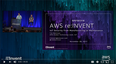 The threat model for IoT devices is very different from the threat model for cloud applications. During this session at AWS re:Invent, we discussed how all IoT solutions must incorporate end-to-end security from the start, how to mitigate threats and how to avoid common pitfalls. You will also learn about the steps to take in the manufacturing process, how to provision and authenticate devices in the field and how to comply with IT requirements during the maintenance phase of the product lifecycle.