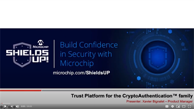 In this episode of the Microchip SHIELDS UP! series of security webinars, we provide an overview of the Trust Platform service for the CryptoAuthentication™ family of devices. You will learn about the pre-provisioned Trust&GO, pre-configured TrustFLEX and fully customizable TrustCUSTOM options for the ATECC608B. You will also be given a high-level description of the on-boarding process and the basic information you need to get started with using the provisioning services available from our factories.