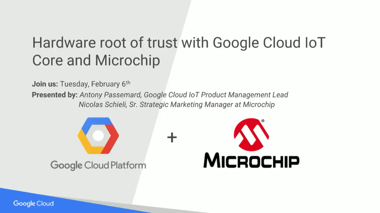 Security is a huge hurdle to IoT deployment. No company wants to be in the news for having its product as part of a large, IoT-driven DDoS attack. In this session you will learn how Google and Microchip have partnered to offer a seamless and highly secure solution for IoT devices connecting to Google Cloud IoT.
