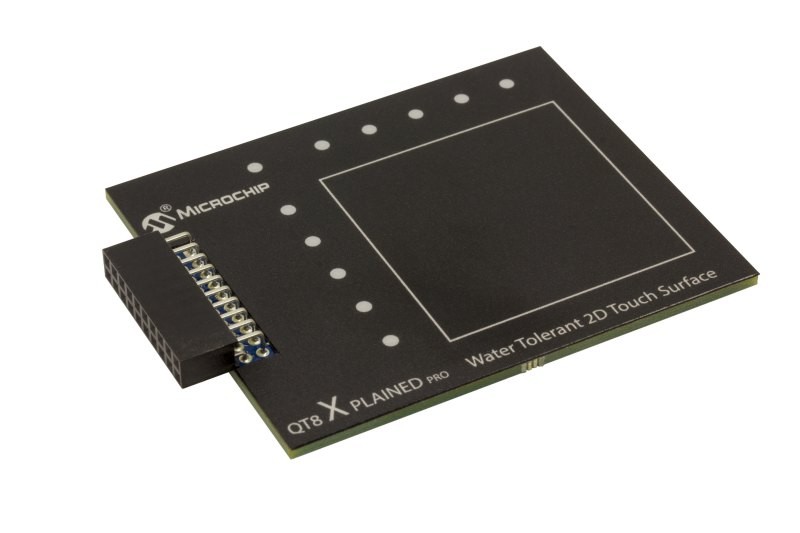 This development kit enables easy evaluation of a water-tolerant design that uses the 2D Touch Surface Library. The kit demonstrates water tolerance and noise immunity on a touchpad and has two touch buttons, all of which are controlled by the same AVR® microcontroller. It features dual-finger gesture recognition on chip, including swipes, tap events, dual finger swipes, rotations and even pinch/zoom gestures.