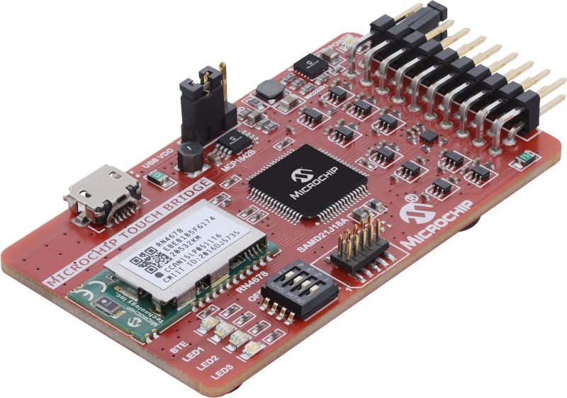 This Curiosity development board allows you to evaluation capacitive touch using core-independent touch DSCs. This board has an on-board touch button, slider, CAN/CAN FD and LIN transceiver. It supports two Xplained PRO connectors to interface to QT Touch boards.