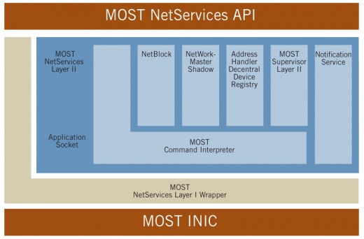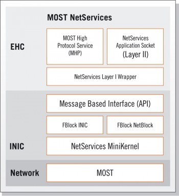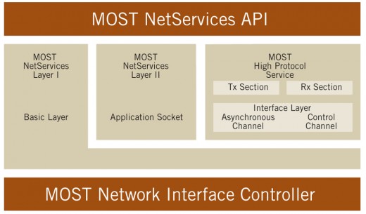 The NetServices Application Programming Interface (API) provides a software interface to the MOST® network low-level system services. MOST NetServices provides access to all data transportation mechanisms on a MOST network.