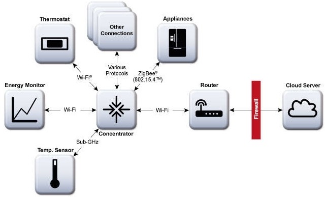 As more gadgets are being added to Home Area Networks (HANs), consumers are faced with the challenge of getting multiple wireless communication protocols to work together. For example, a single home could contain devices that use Wi-Fi® (thermostats, security systems, entertainment devices), the sub-GHz MiWi™ networking protocol (temperature sensors, humidity sensors, control devices) and Zigbee® (smart appliances, energy monitors). The Connected Home Concentrator is a reference design of a single device that can bridge multiple wireless protocols.