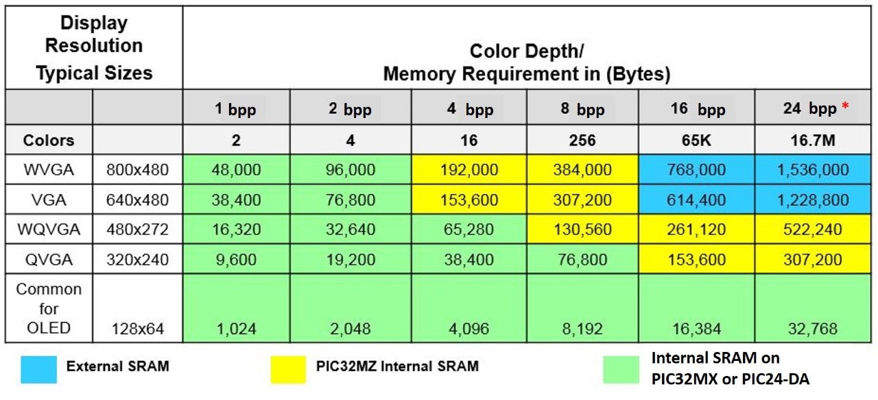 * The minimum memory required for a 24 bpp is more because of our 32-bit word length.