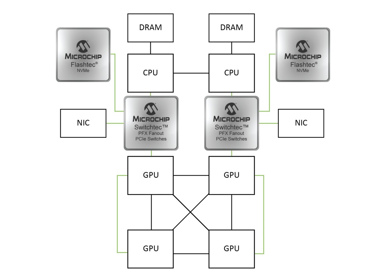 The Machine Learning (ML) training and inference market using multiple GPUs is rapidly evolving, driving advanced technologies such as low-latency, high-throughput PCIe® switches and high-performance NVMe™ Flash controllers. The increased use of accelerators for deep learning, Artificial Intelligence (AI) and ML is enabling radical advances in image classification, speech recognition, autonomous driving, bioinformatics and video analytics. This results in a growing need for a high-bandwidth/low-latency PCIe interconnect infrastructure utilizing NVMe storage to enable parallel computing.