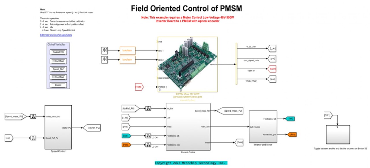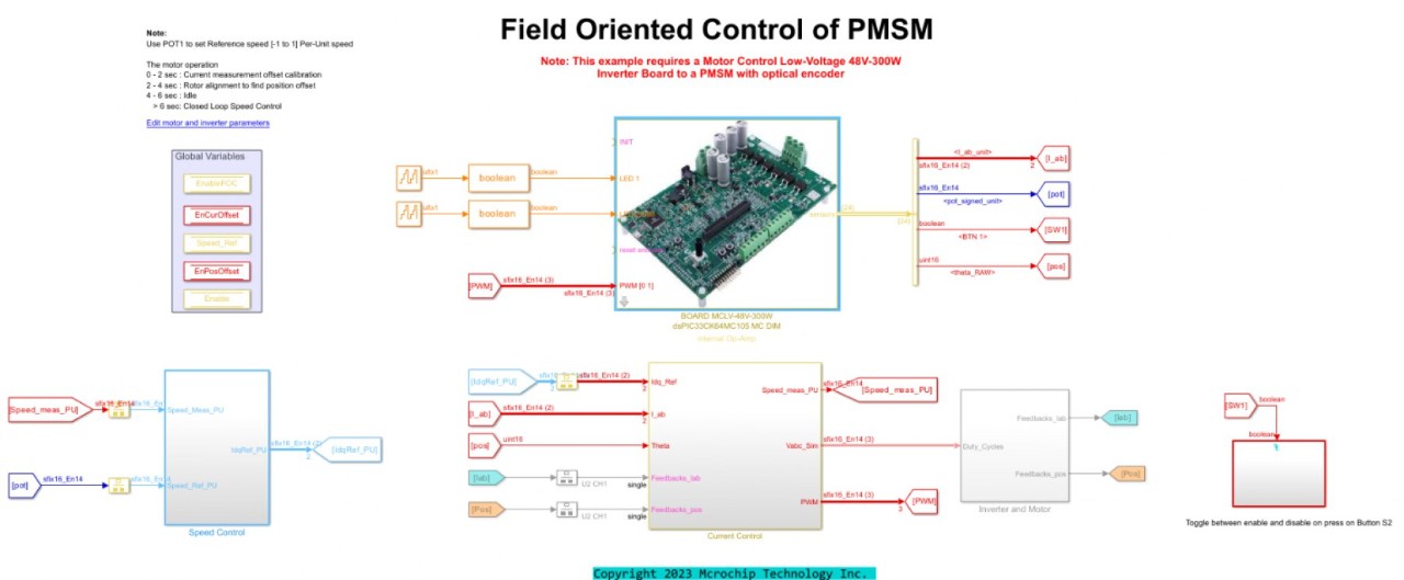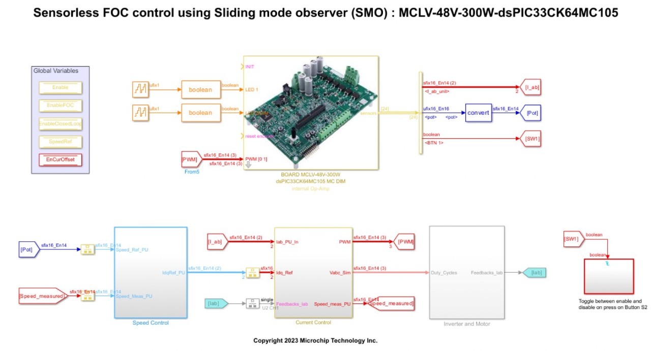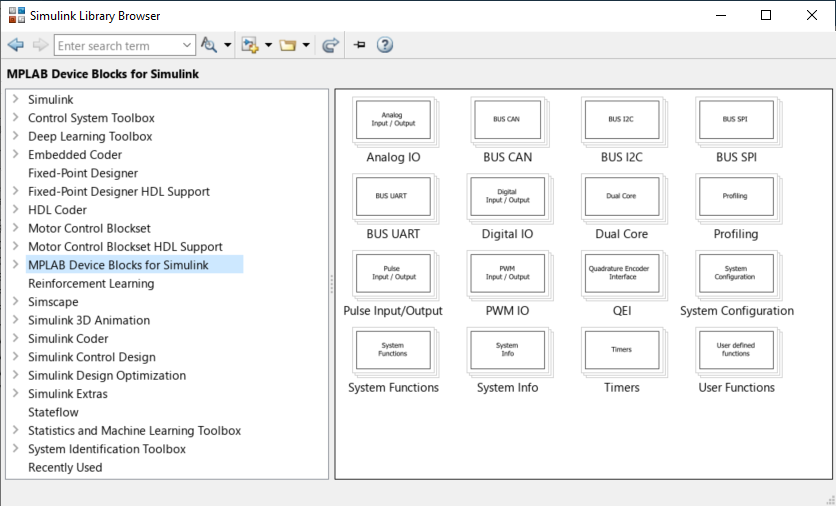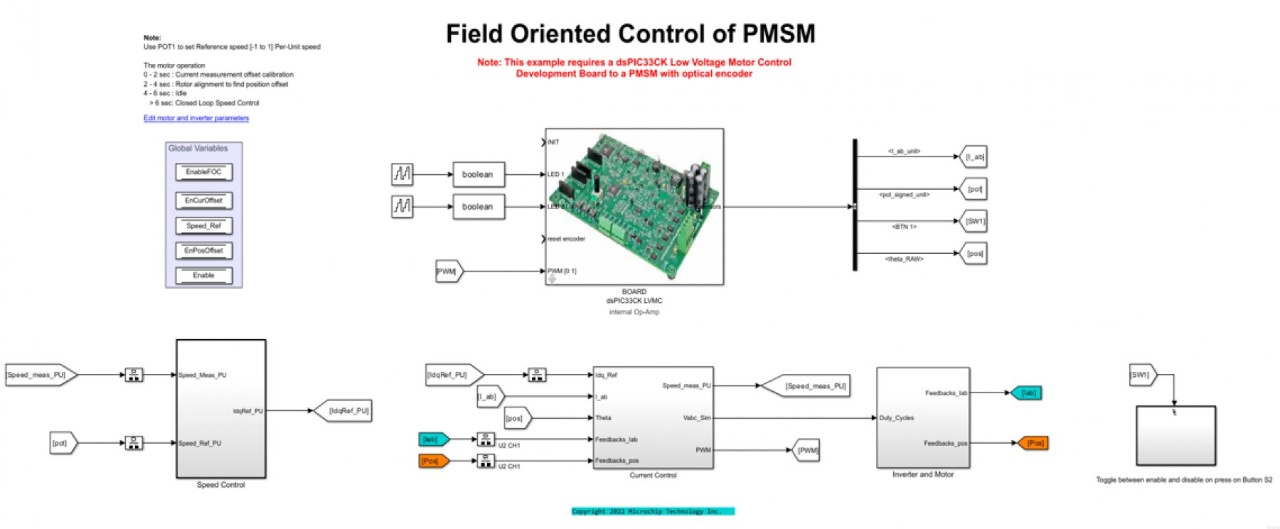 You can simulate a control algorithm, generate the code and program a dsPIC® DSC or SAM MCU from the Simulink model. You can use the MPLAB X IDE for the final tuning of the code generated from the model.