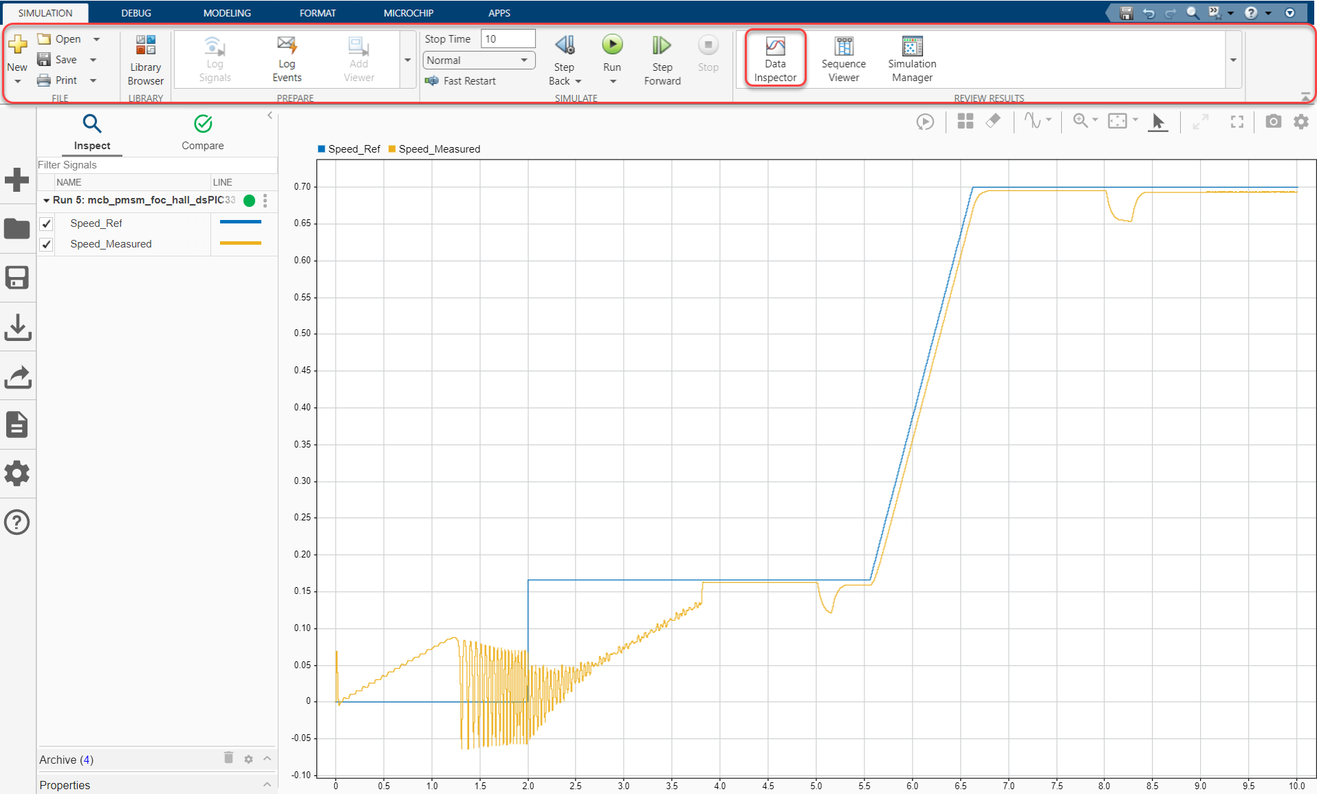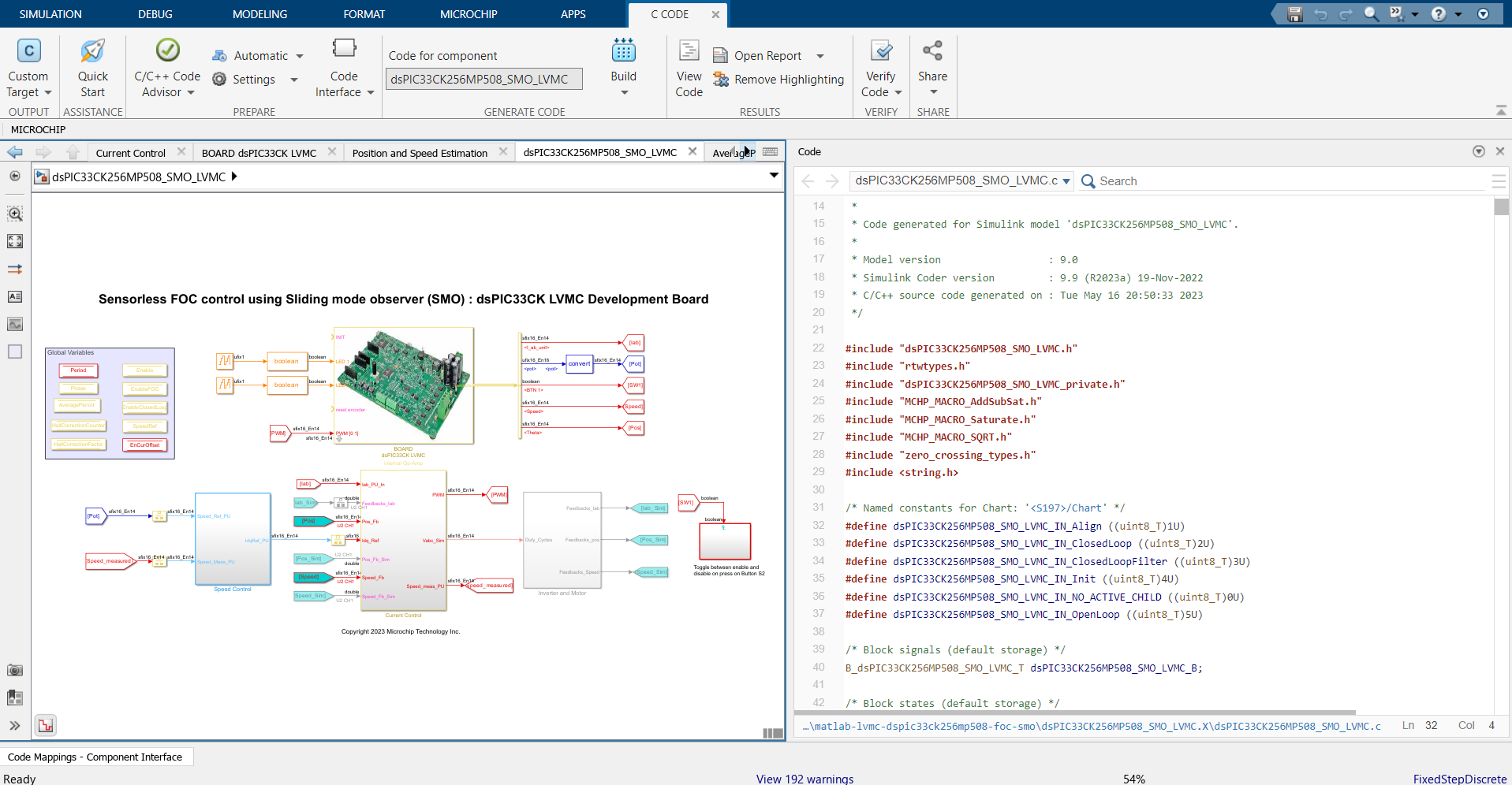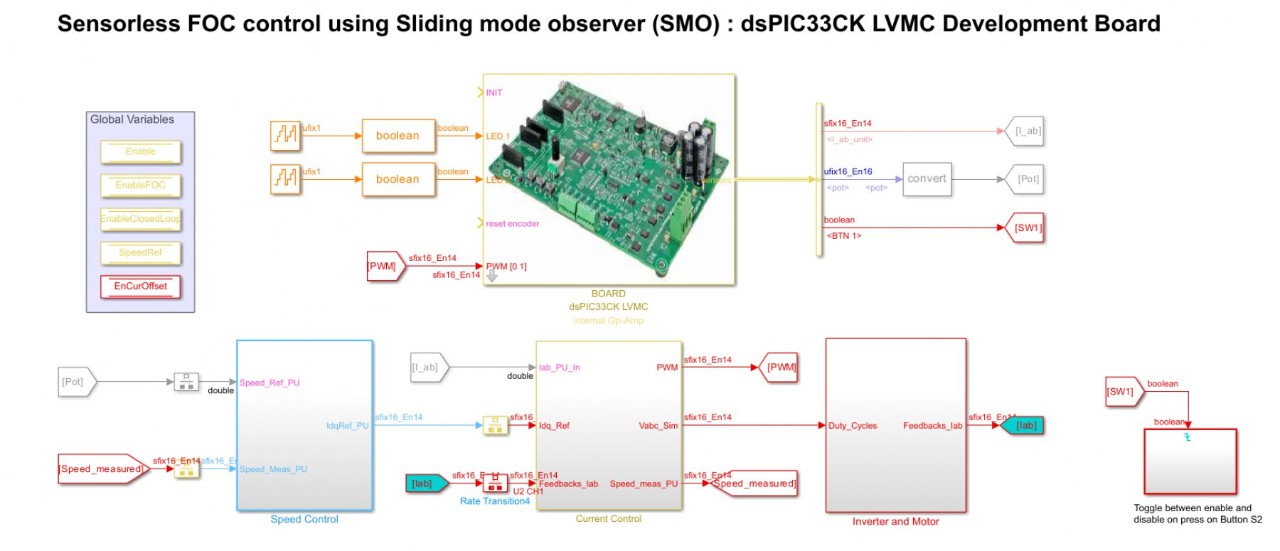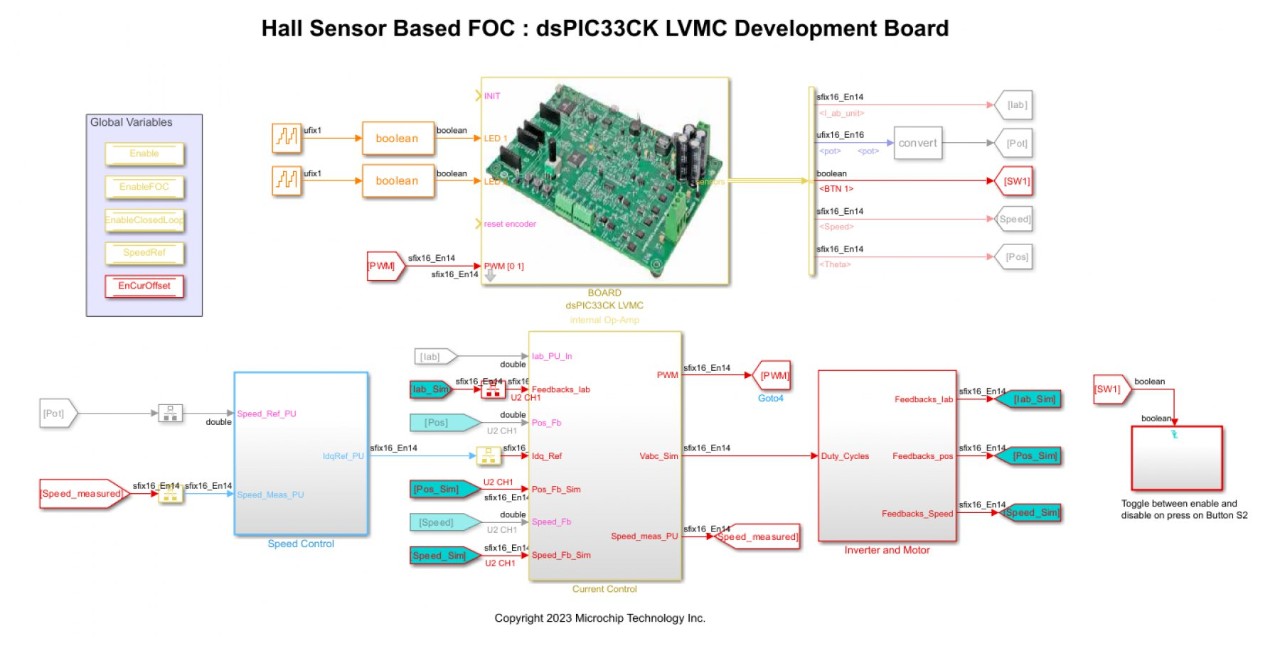 You can simulate a control algorithm, generate the code and program a dsPIC® DSC or SAM MCU from the Simulink model. You can use the MPLAB X IDE for the final tuning of the code generated from the model.