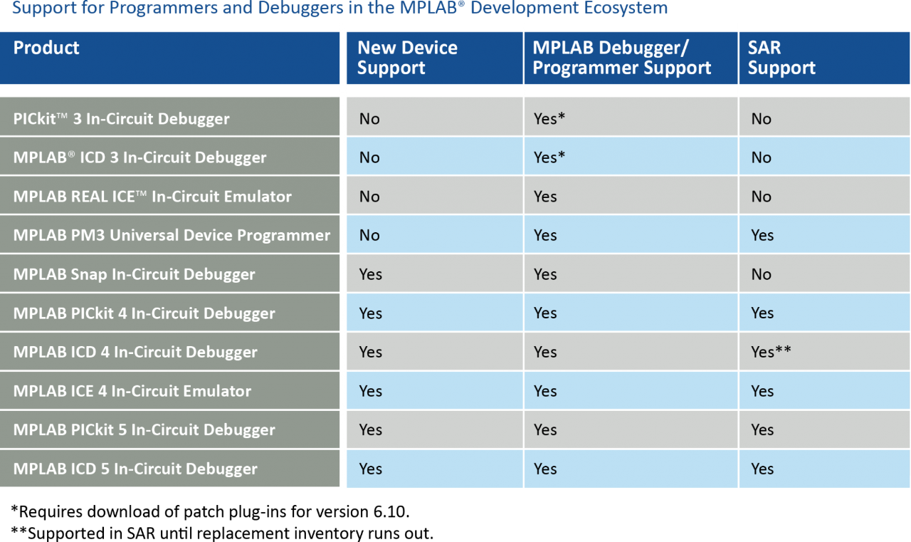 We offer a selection of programmers and debuggers to support your development using PIC®, AVR® and SAM microcontrollers (MCUs) and dsPIC® Digital Signal Controllers (DSCs). They deliver seamless compatibility and feature graphical, drag-and-drop programming.
